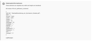 Jedes Inhaltselement enthält einen Hinweis auf die alten Daten, dieser kann manuell entfernt werden.
