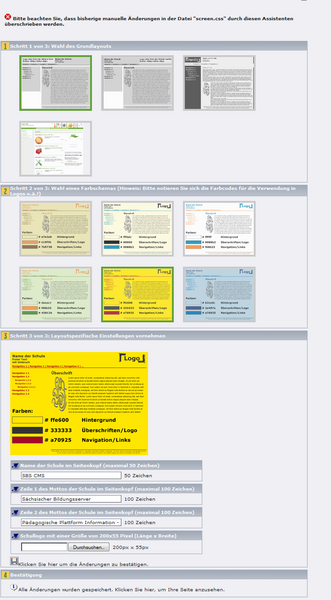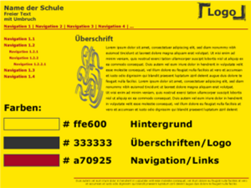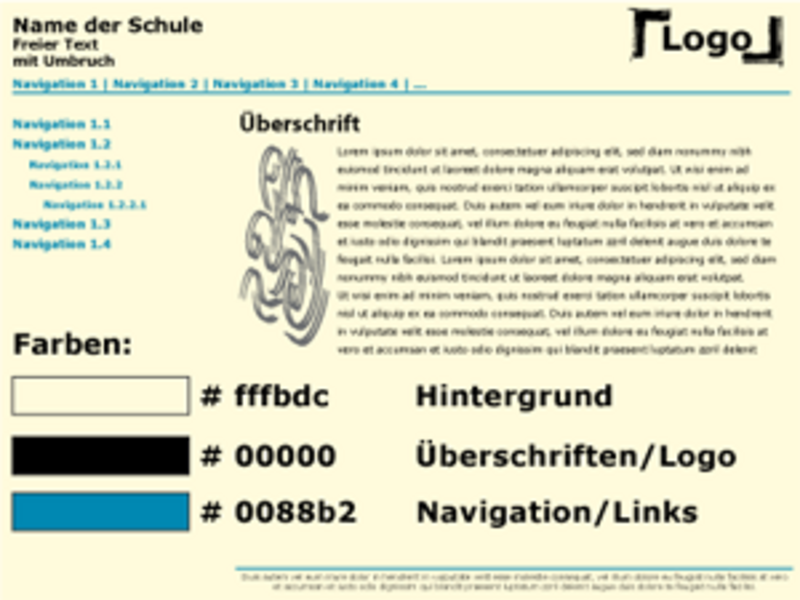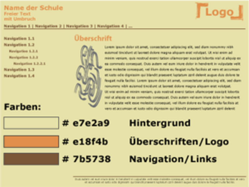 Je nach Vorlage haben Sie die Möglichkeit verschiedene Optionen zu setzen. In dem meisten Vorlagen sind das der Schulname, ein Logo und ein Motto.